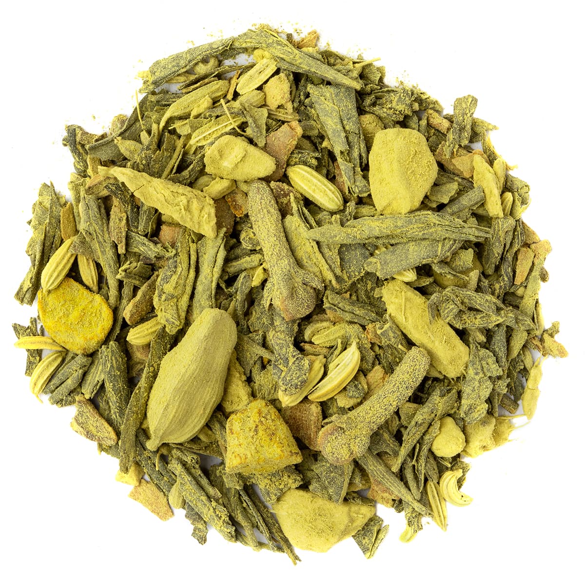 Ingrédients : Thé vert China Sencha*, gingembre*, bâtons de cannelle*, anis*, fenouil*, cannelle Ceylan*, curcuma*, thé vert Matcha* (5%), cardamome*, clou de girofle*, cardamome moulue*.* Issu de l‘agriculture biologique