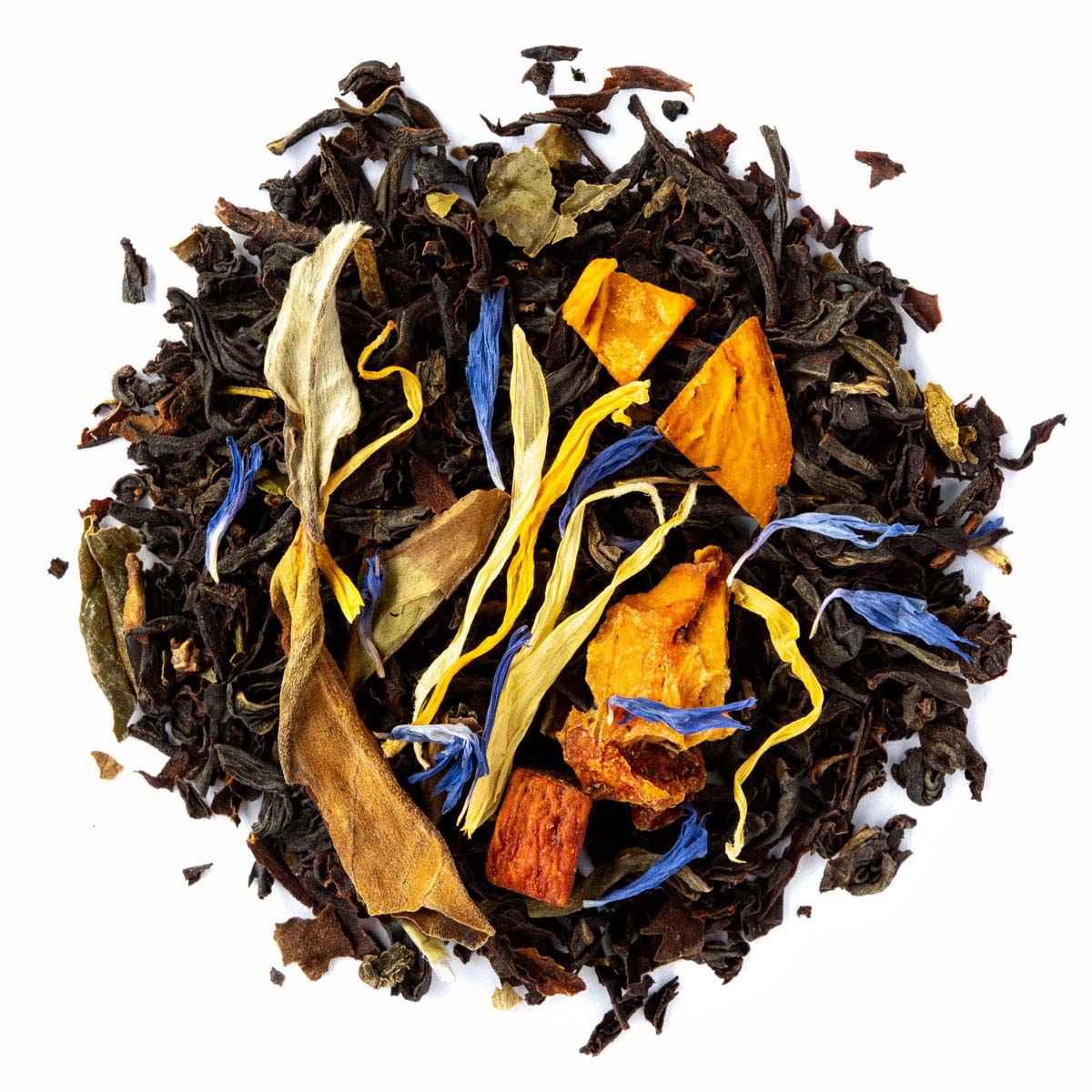 Ingrédients : Thé noir Assam*, thé noir Inde du Sud*, thé blanc Pai Mu Tan*, thé vert Darjeeling OP*, papaye*, morceaux de mangue*, arôme naturel de mangue, arôme naturel de fruit de la passion, arôme naturel d’orange, aronia*, fleurs de souci*, fleurs de bleuet*, mangue*. * Issu de l‘agriculture biologique