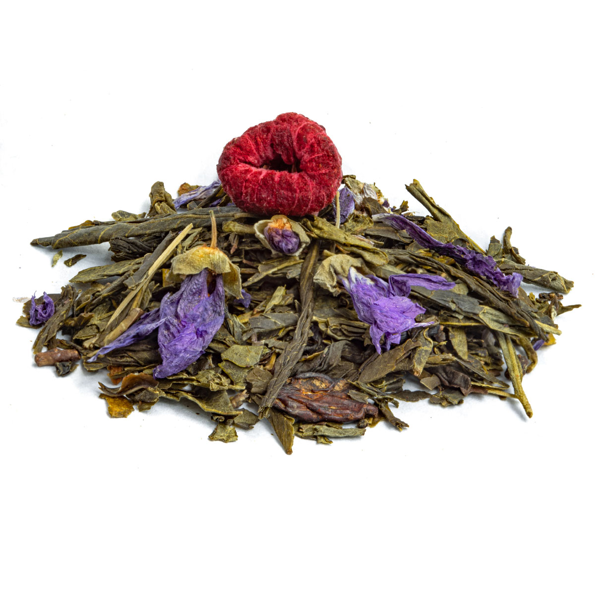 Ingrédients : Thé vert China Sencha, arôme, framboise (4%), China White Monkey, mauve, violette (1%).
