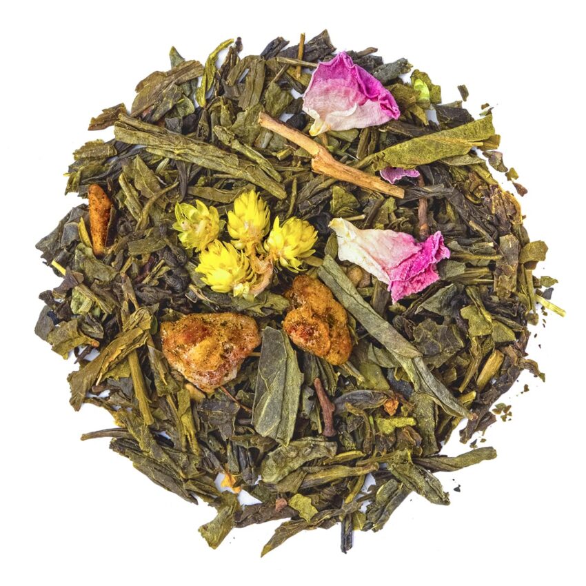 Reçois gratuitement 3 visuels professionnels de Thé Vert Rose Immortelle Bio dès 1 kg commandé.