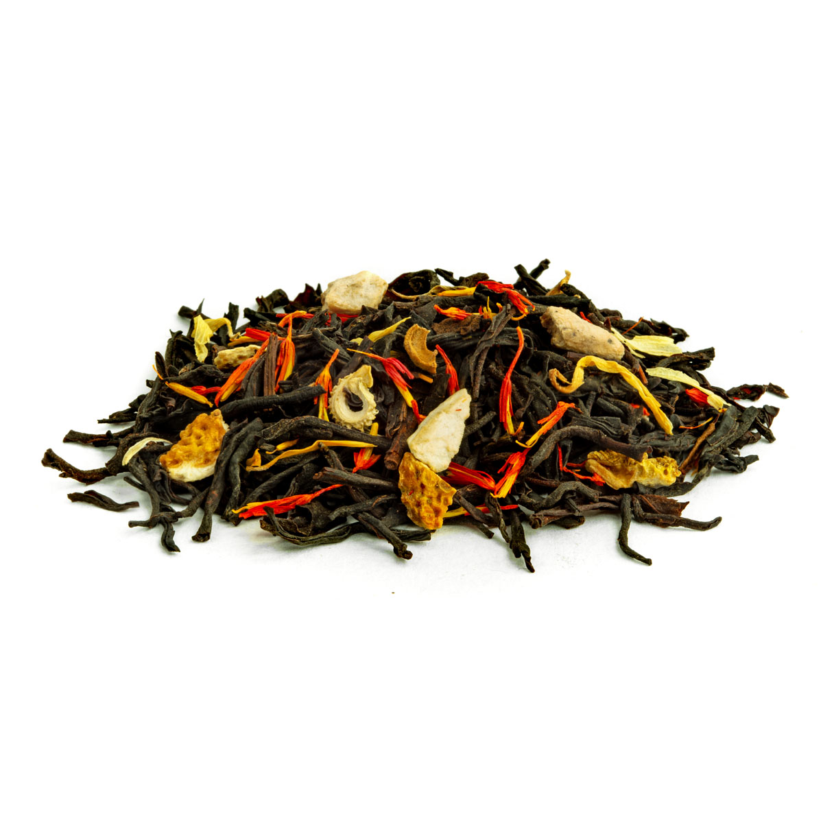 Ingrédients : Thé noir Rukeri, thé noir Kenya Kaimosi, écorces de citron, arôme naturel de canneberge, grenade (3%), fleurs de souci, fleurs de carthame, arôme naturel de rhum.